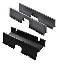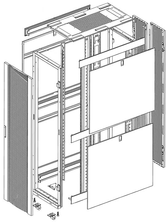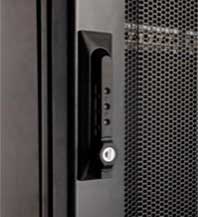 - Вертикальные лотки входят в комплект шкафа. Лотки имеют петли для быстрого монтажа вертикальных блоков распределения питания (PDU)