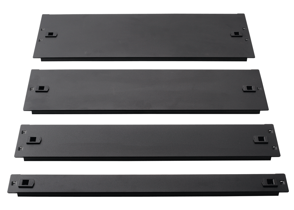 Щеточные кабельные вводы предназначены для защиты внутреннего пространства шкафа от попадания пыли и грязи, а также для предотвращения утечек воздушных потоков в местах ввода кабелей в шкаф. Панели-заглушки используются для установки на монтажные профили шкафа с целью закрытия неиспользуемого пространства, блокировки воздушных потоков и повышения эффективности охлаждения оборудования в шкафу.
