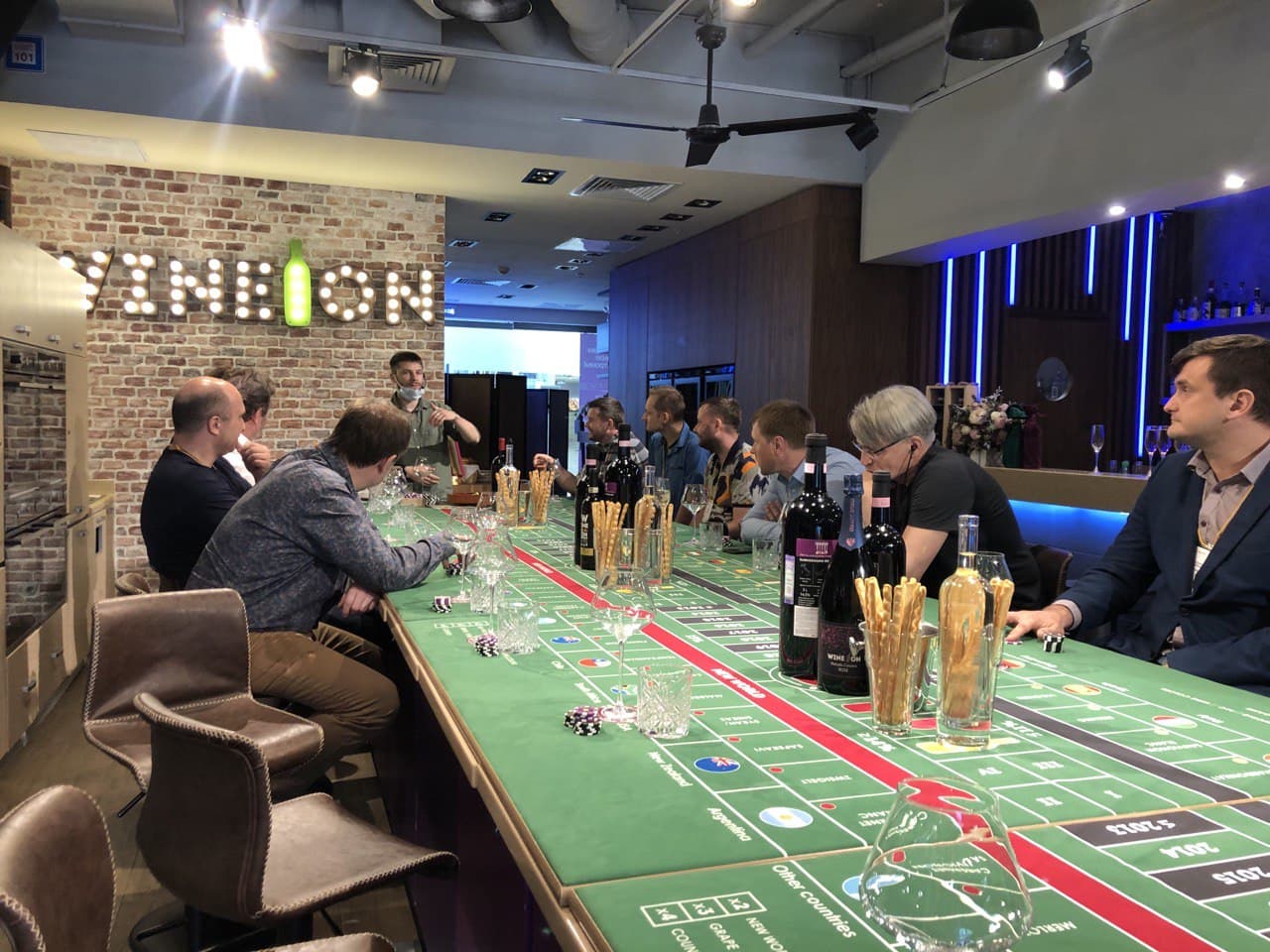 В этот раз мероприятие для партнеров проходило в Москве на площадке винного казино. После официальных докладов и награждения победителей, участники отправились испытать свое везение к игровому столу.