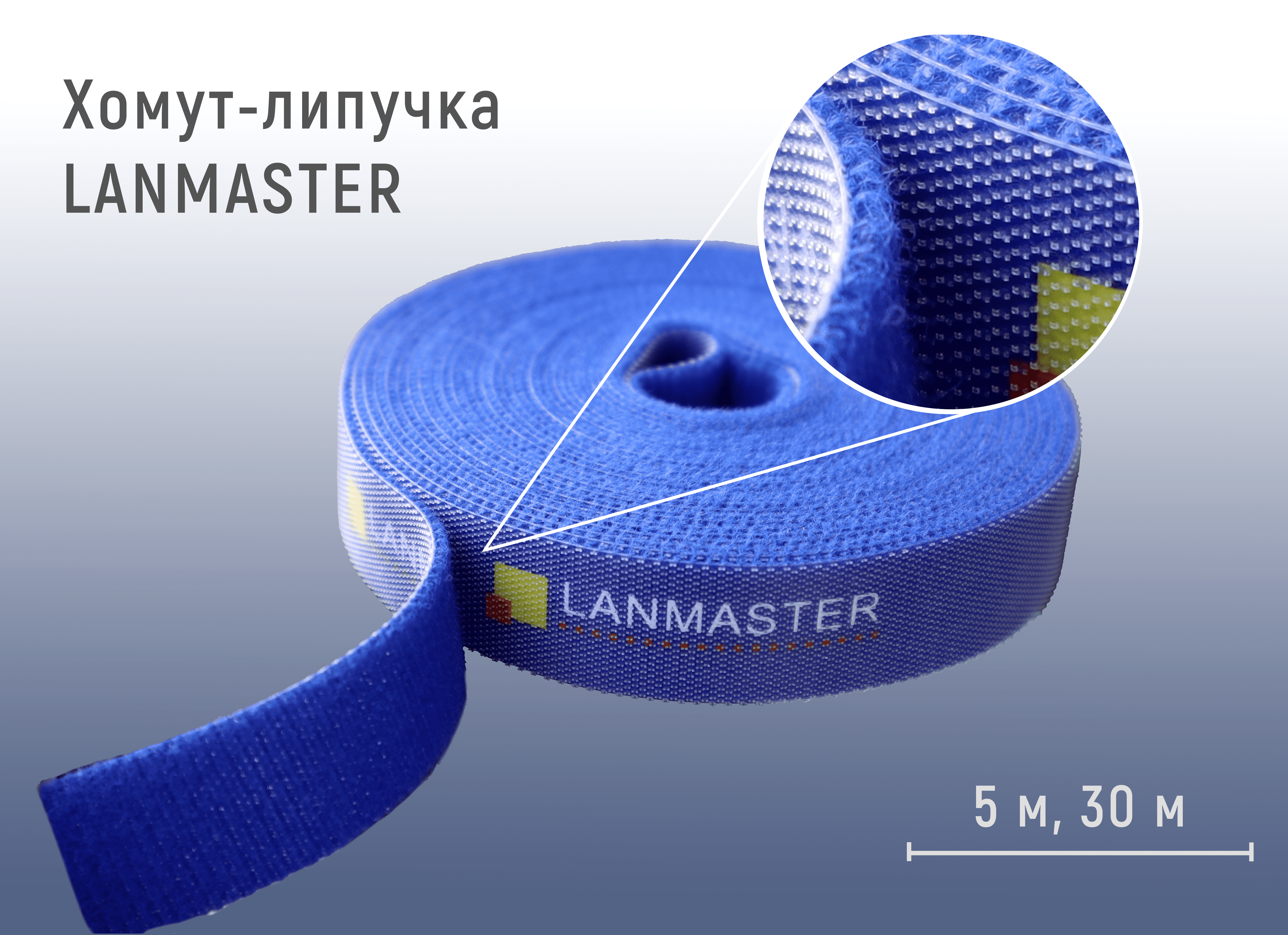 | LAN-VCM5M-BL | Хомут-липучка LANMASTER шириной 20 мм, 5 м, синий | На страницу товара |