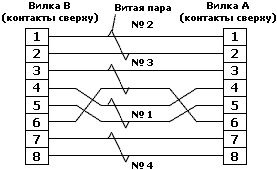 Схема разводки проводов в коннекторах T-568B UTP