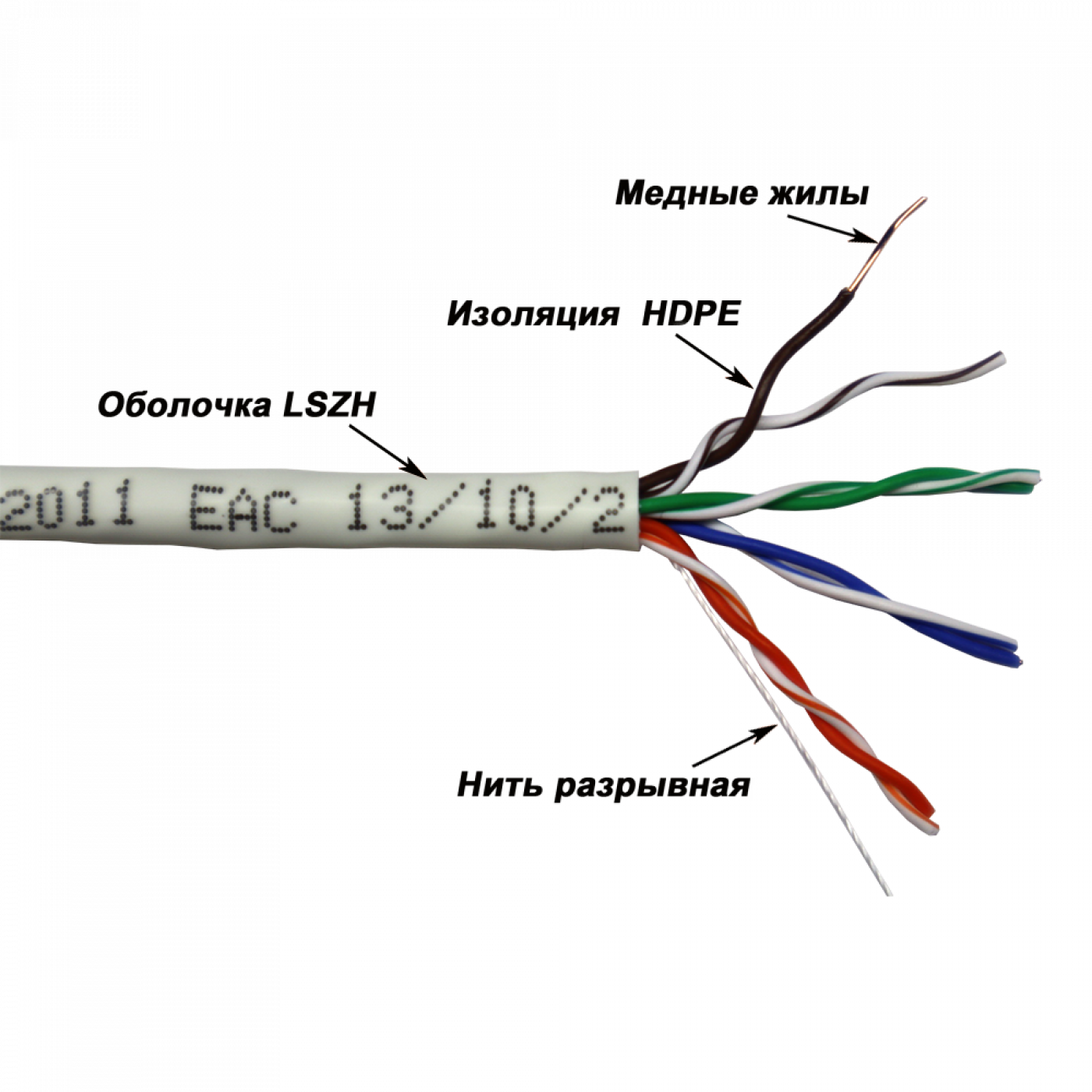 Для облегчения разделки кабеля под оболочкой имеется разрывная нить.