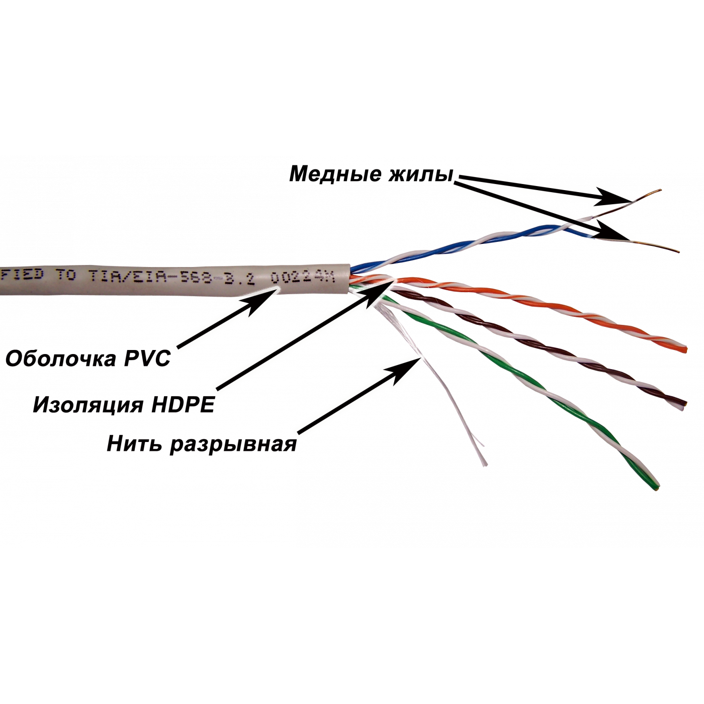 Четырехпарный кабель UTP имеет следующую конструкцию: