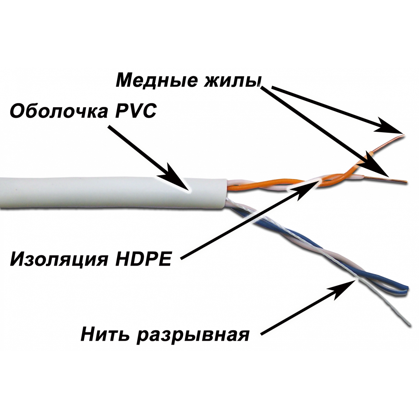 Каждый проводник заключен в изоляцию HDPE (полиэтилен высокой плотности).