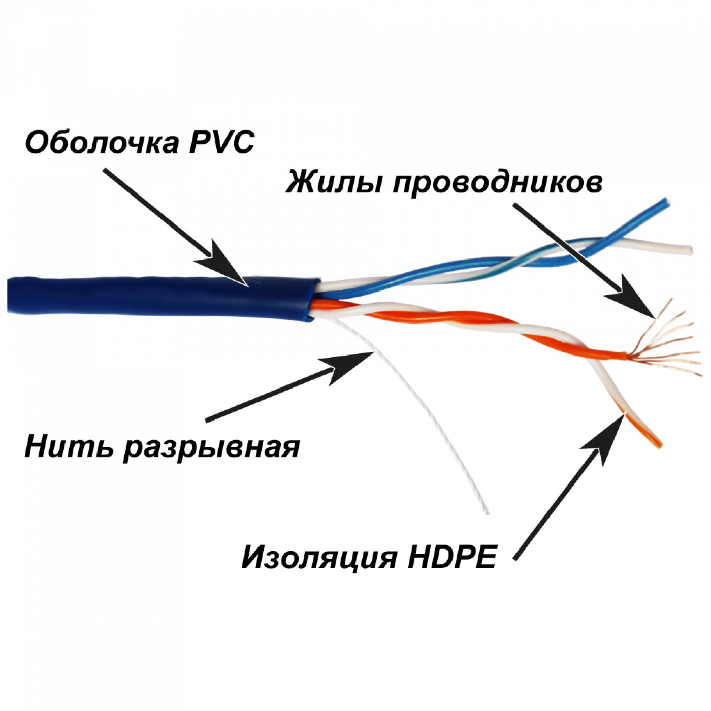 Каждый проводник заключен в изоляцию HDPE (полиэтилен высокой плотности).