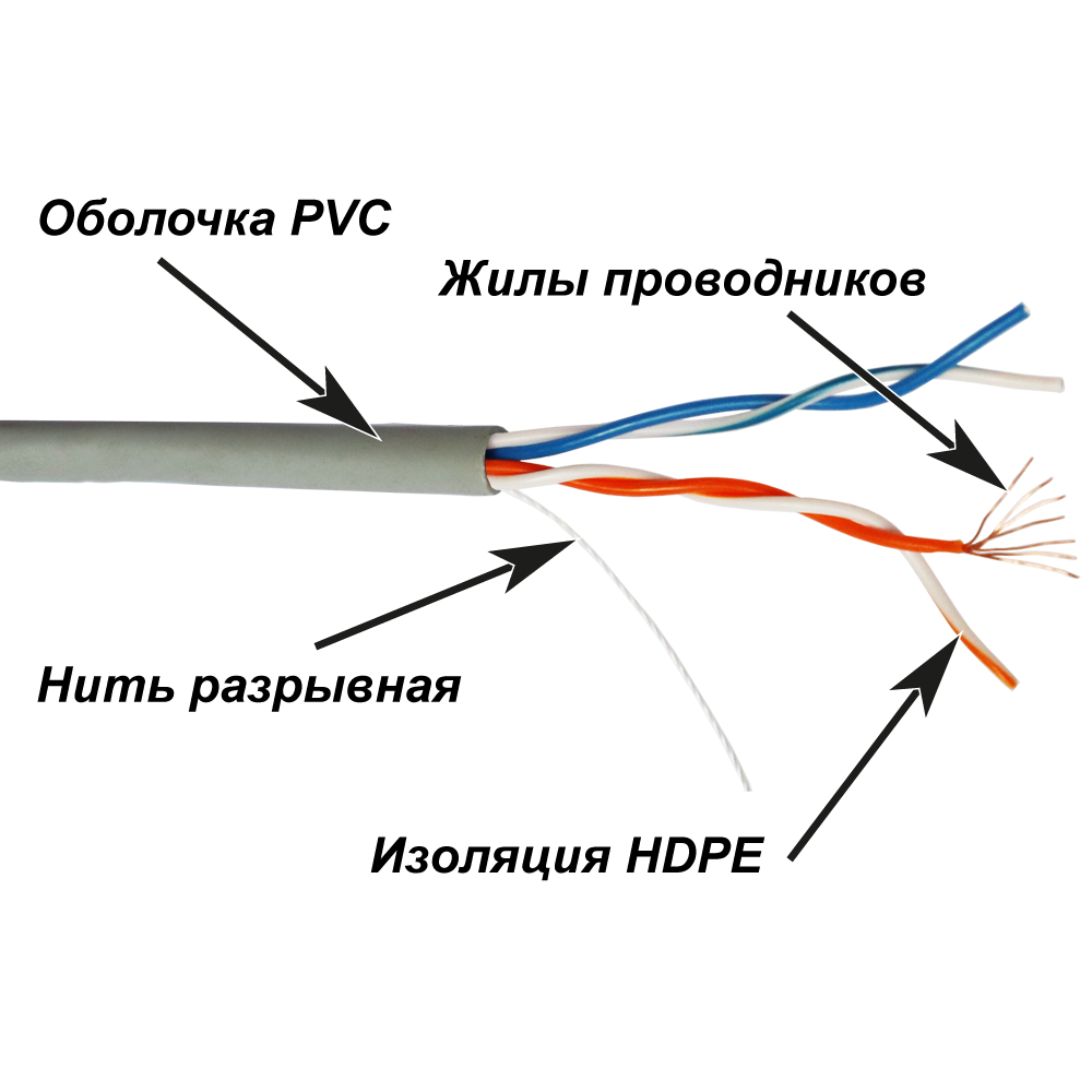 Две витых пары заключены в общую оболочку из ПВХ (PVC).