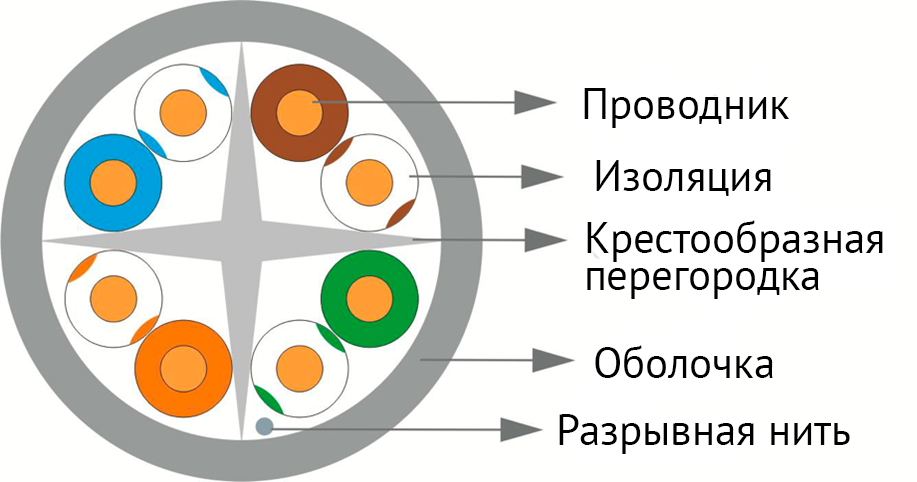 Четырехпарный кабель UTP имеет следующую конструкцию: