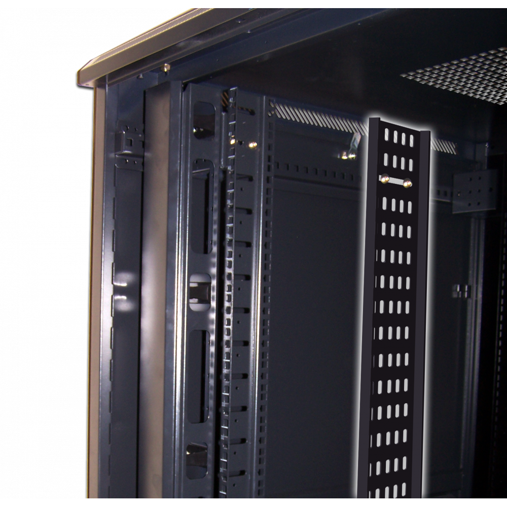 Вертикальный кабельный лоток для напольных шкафов предназначен для вертикальной фиксации кабелей, а также для крепления на его поверхность различного недевятнадцатидюймого оборудования.