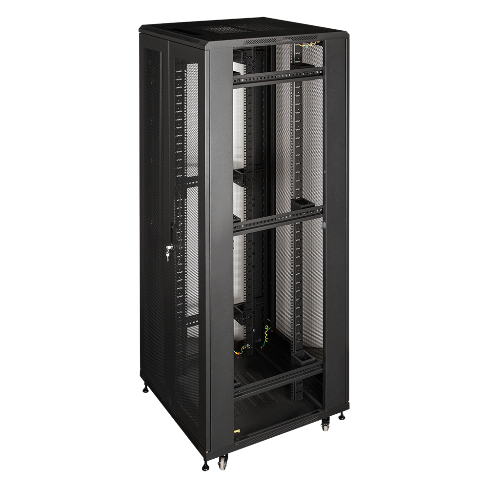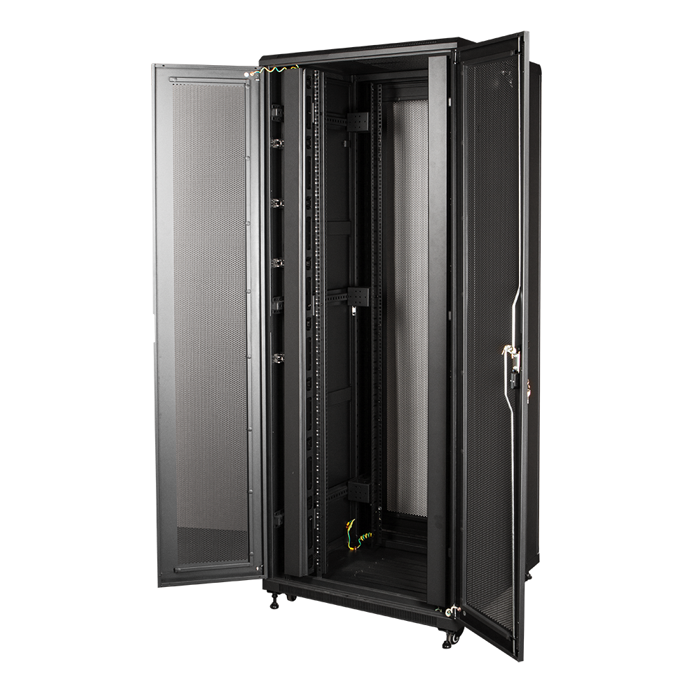 Шкаф напольный серии Business используется для размещения 19'' оборудования, с креплением на двух или четырех монтажных профилях. Возможна установка полок переднего крепления и силовых полок, имеющих четыре точки крепления с монтажом на передние и задние профили (нагрузка на каждую полку от 50 до 100 кг). Предусмотрено место для установки потолочного вентиляторного модуля.