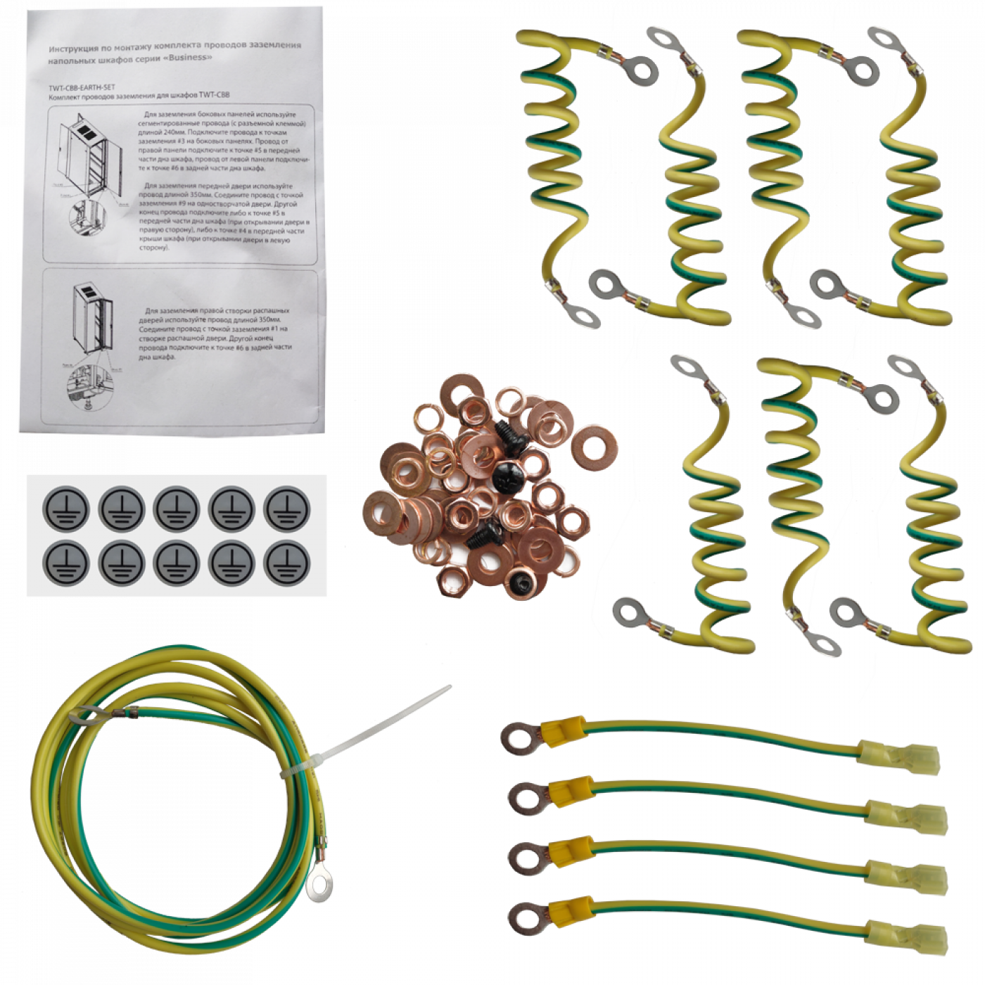 Комплект заземления состоит из набора соединительных проводников с крепежом для электрического заземления элементов конструкции шкафа серии Business.
