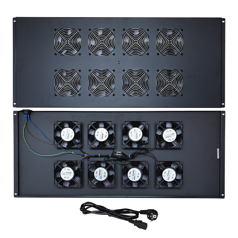 В зависимости от глубины шкафа в полку может быть установлено от 2-х до 10-ти вентиляторов.