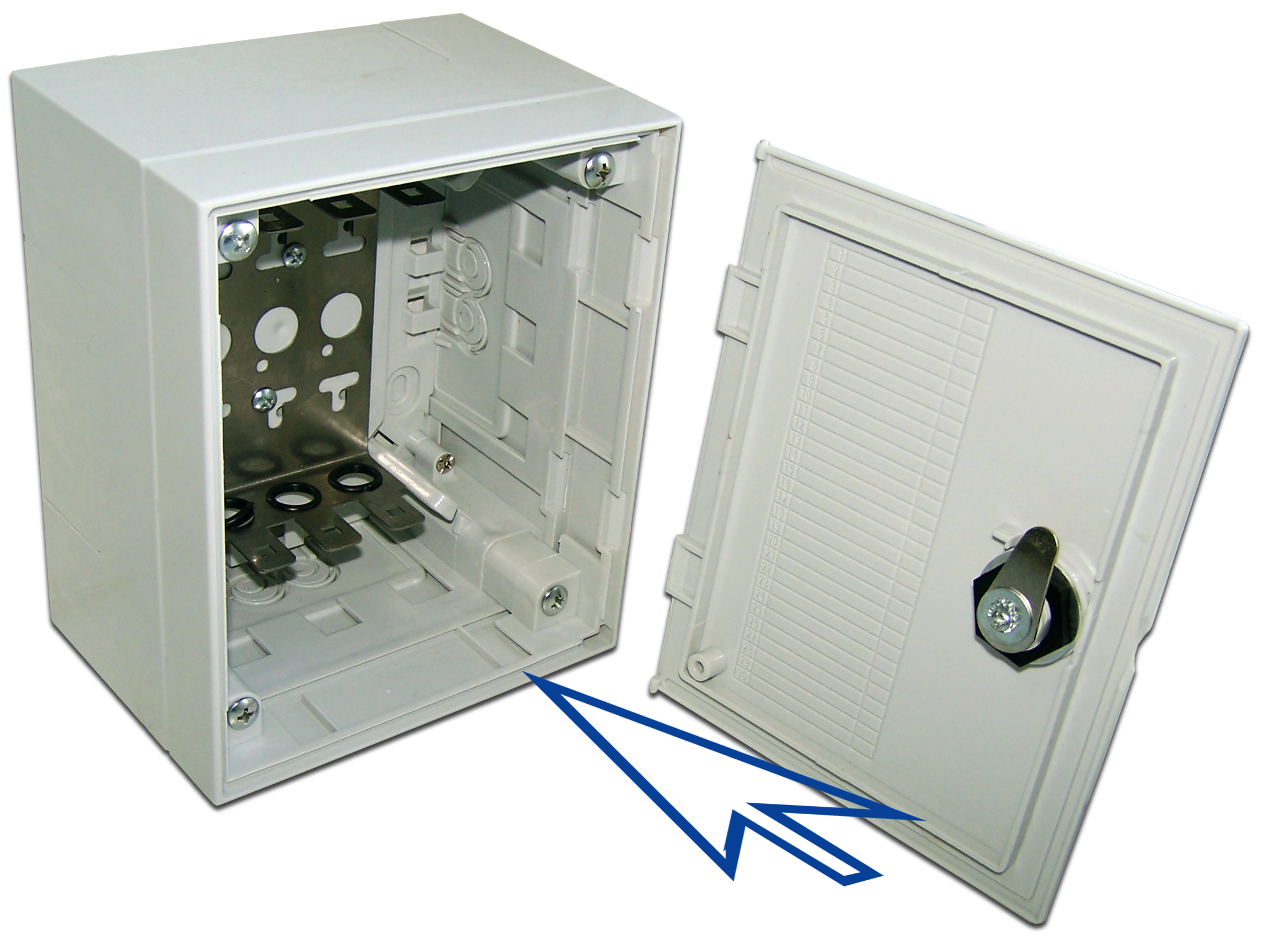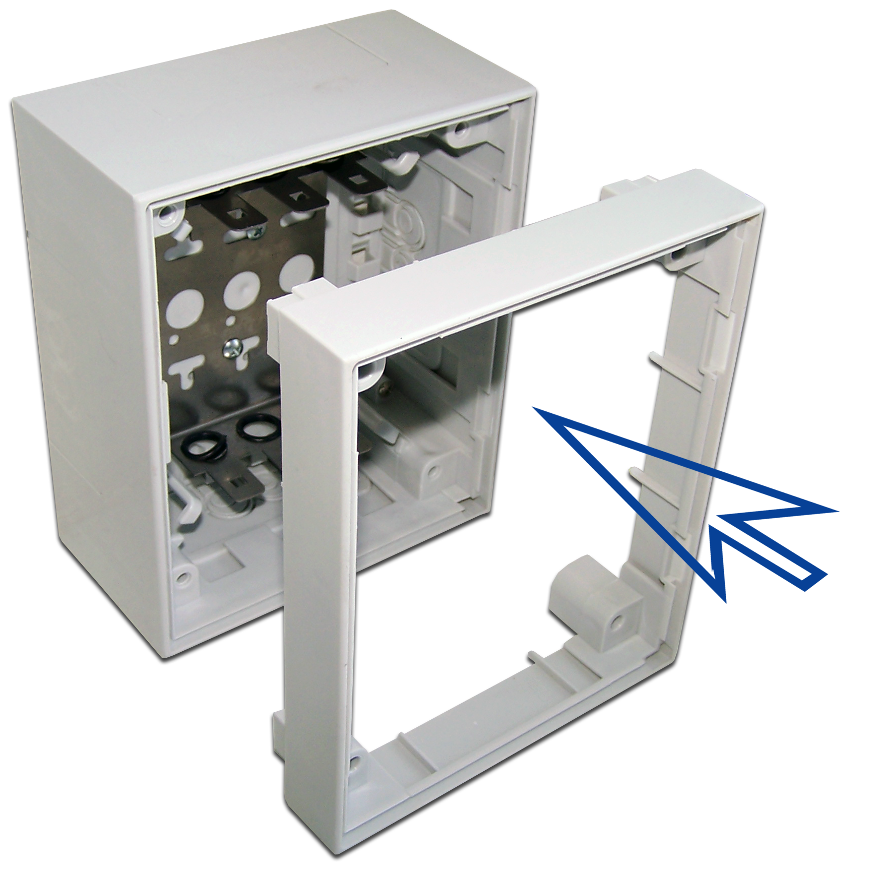 Монтируется непосредственно на лицевую часть бокса с предварительно снятой дверцей. Дверца позднее устанавливается в пазы проставки.