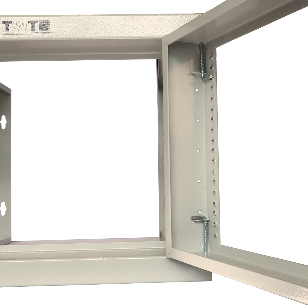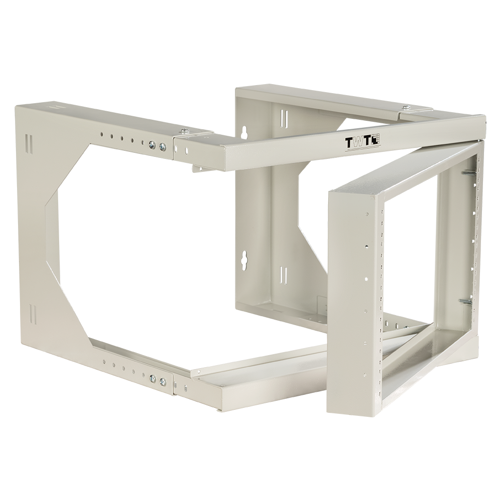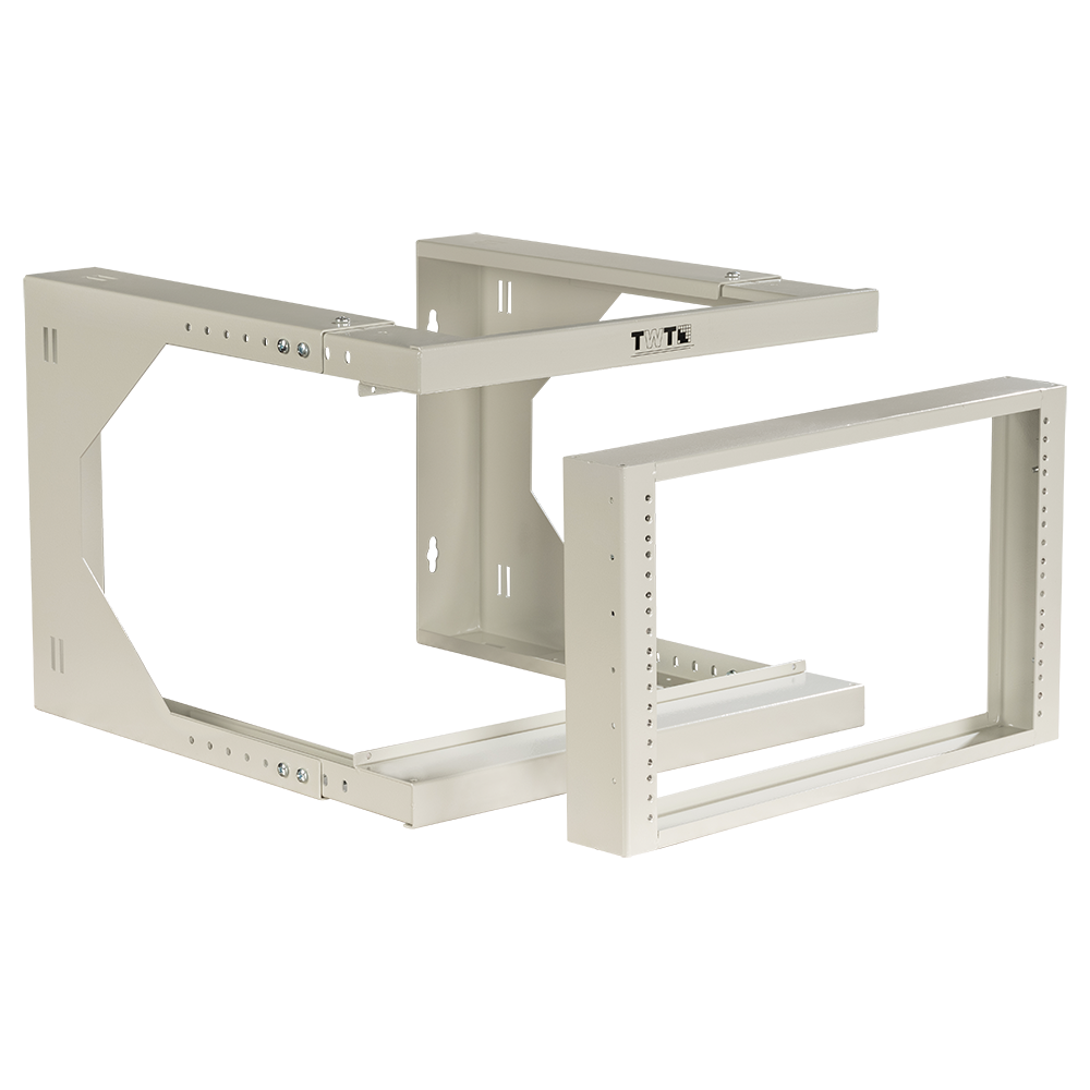 Регулируемая по глубине рама с направляющими позволяет адаптировать конструкцию под нужную глубину для размещения оборудования. Съемная передняя монтажная рама на креплениях открывается на 190 градусов влево или вправо. Обеспечивает легкий доступ к боковым сторонам оборудования и задней панели. Передняя направляющая с резьбой 12-24 готова к установке оборудования.