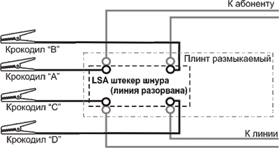 Данный тип шнура размыкает тестируемую линию и позволяет произвести замеры рабочих характеристик, как со стороны линии, так и со стороны абонента.