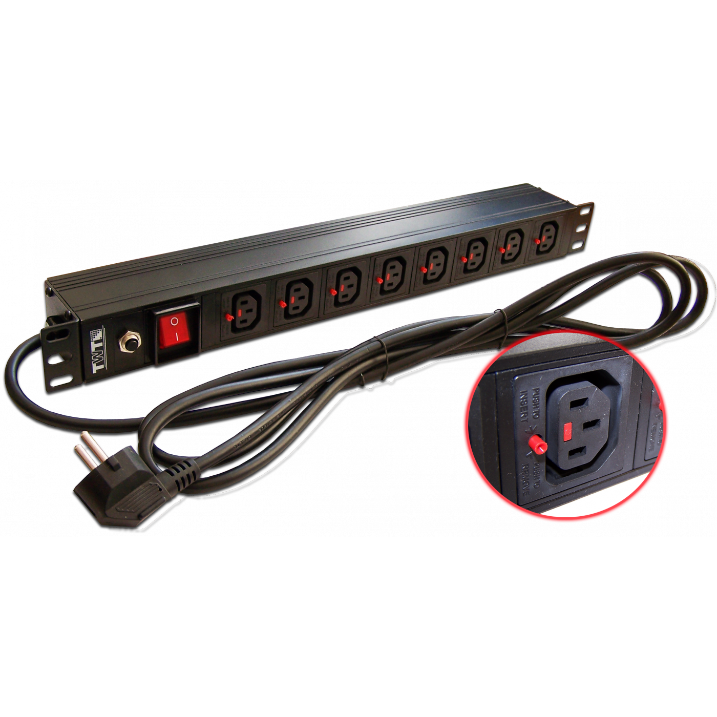 Блок розеток 19" 8 шт. C13 с фиксатором вилки, 10A 250V, шнур питания 3.0 м