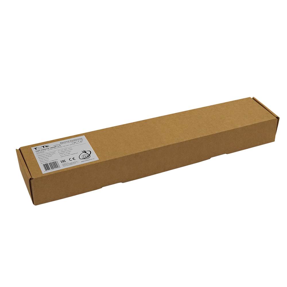 Блок розеток имеет высоту 1U и может монтироваться в стандартные 19" шкафы и стойки. Выключатель питания выполнен с подсветкой.