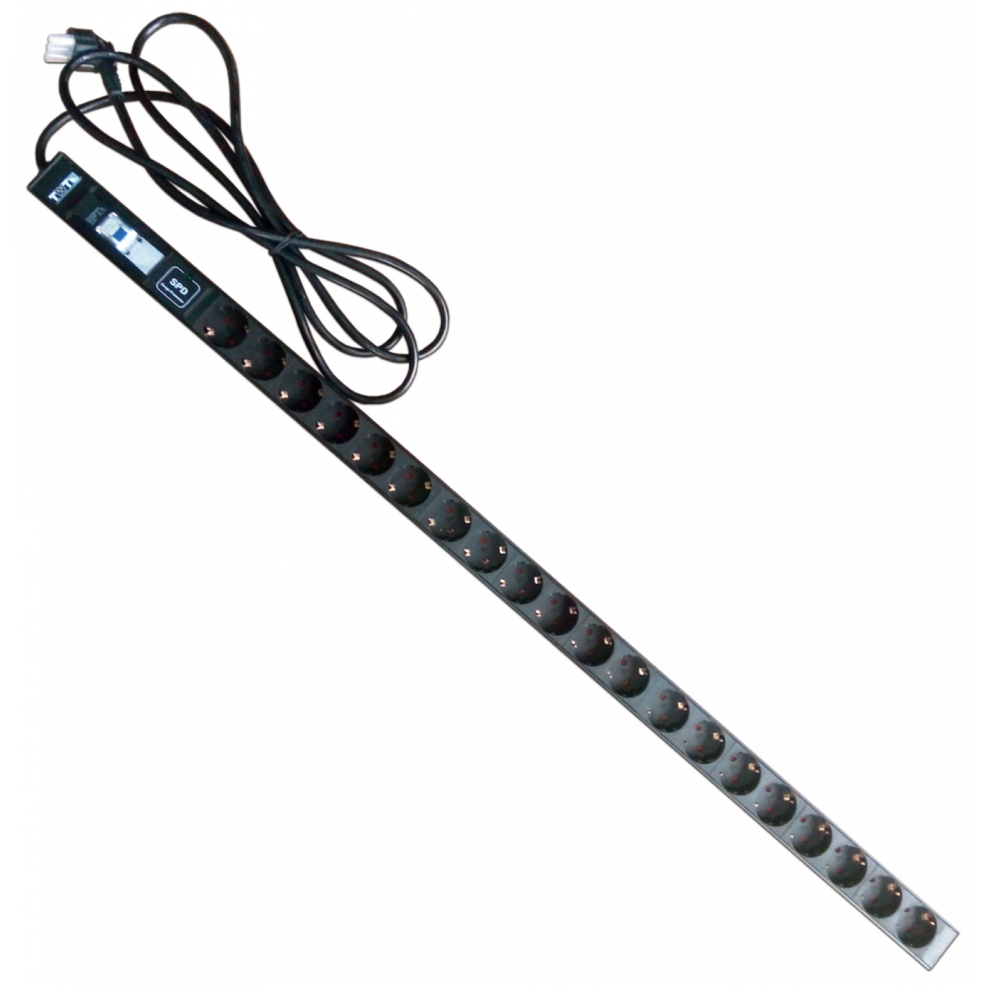 Вертикальный блок розеток, 20xSchuko, 250V, 16A, шнур 3 метра, вилка Schuko