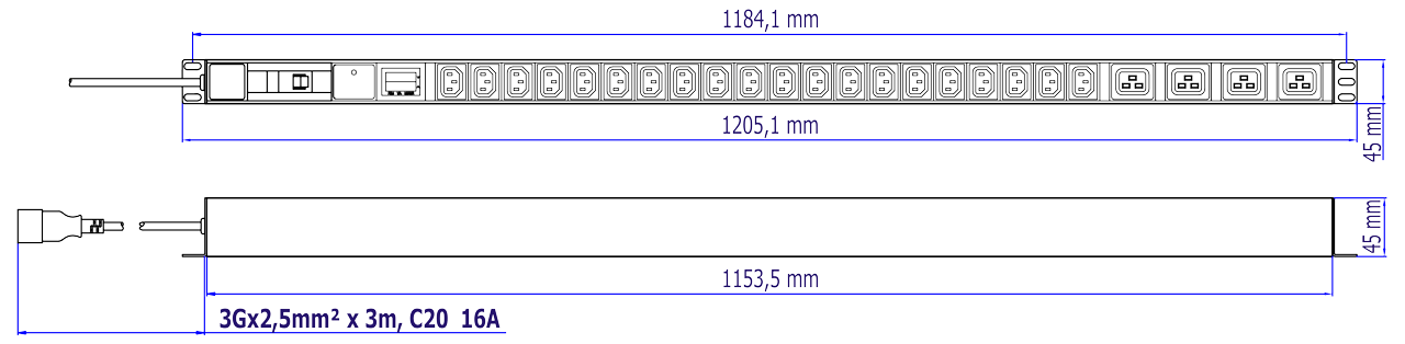 Блок электрических розеток предназначен для распределения электропитания и защиты компьютеров, электронной техники и активного оборудования, оснащенных разъемами С20 и С14, в телекоммуникационных шкафах и стойках.