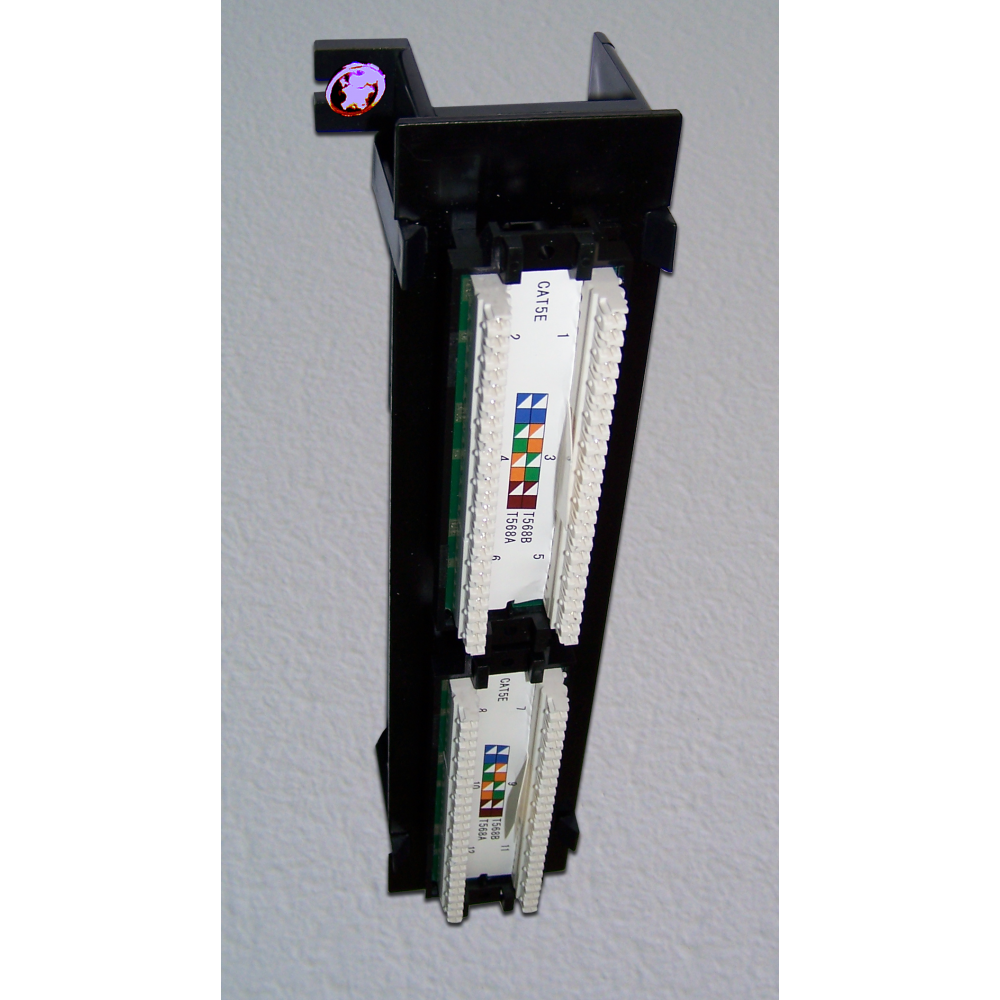 Патч-панель предназначена для монтажа на стену, для чего комплектуется пластиковой подставкой. Панель на подставке фиксируется при помощи защелок.