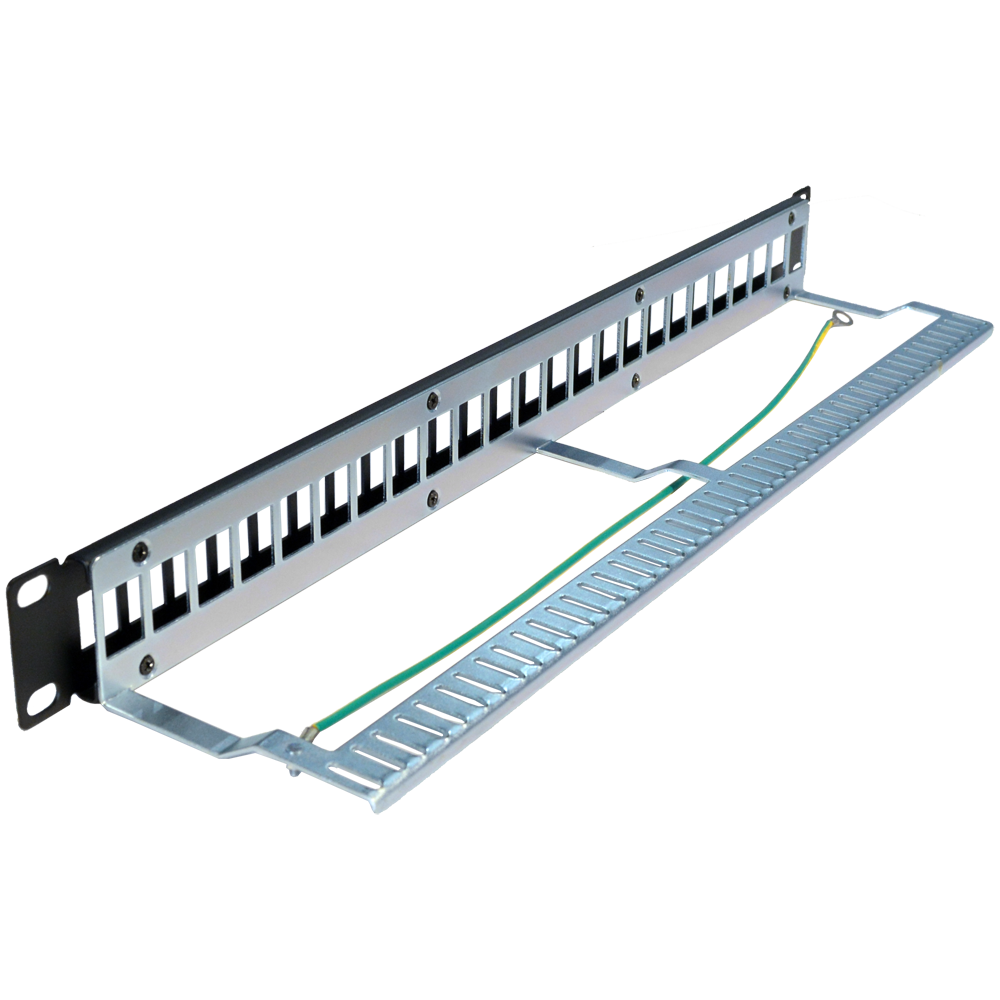 19" экранированная наборная патч-панель на 24 порта предназначена для установки информационных, оптических, аудио, видео и прочих модулей формата Keystone.