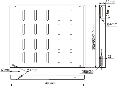 - для стоек глубиной 600мм - 490мм х 350мм,