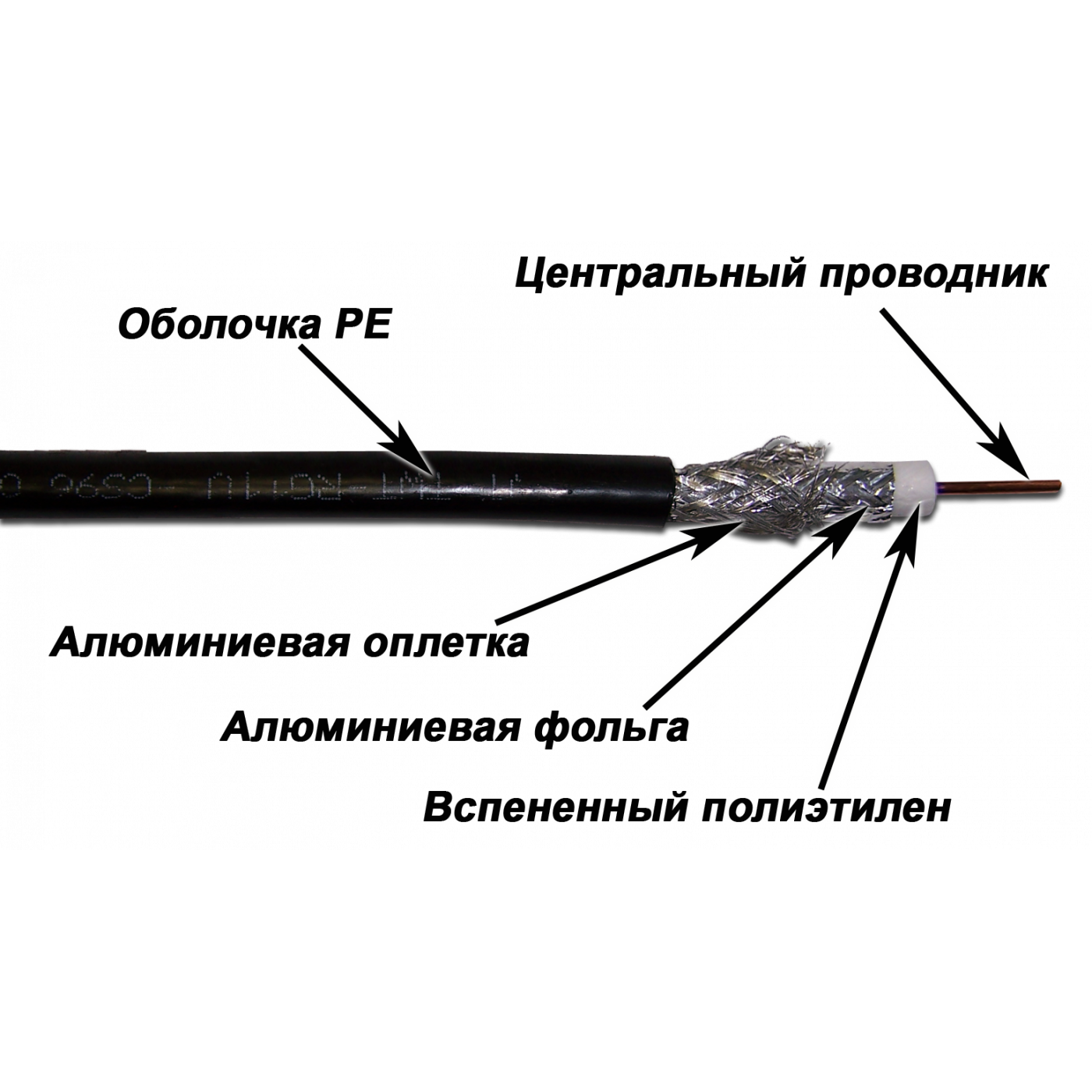 Кабель TWT коаксиальный RG11U 75 Ом, CCS, оплетка AL 96*0.16мм, PE, внешний, черный, 305 м