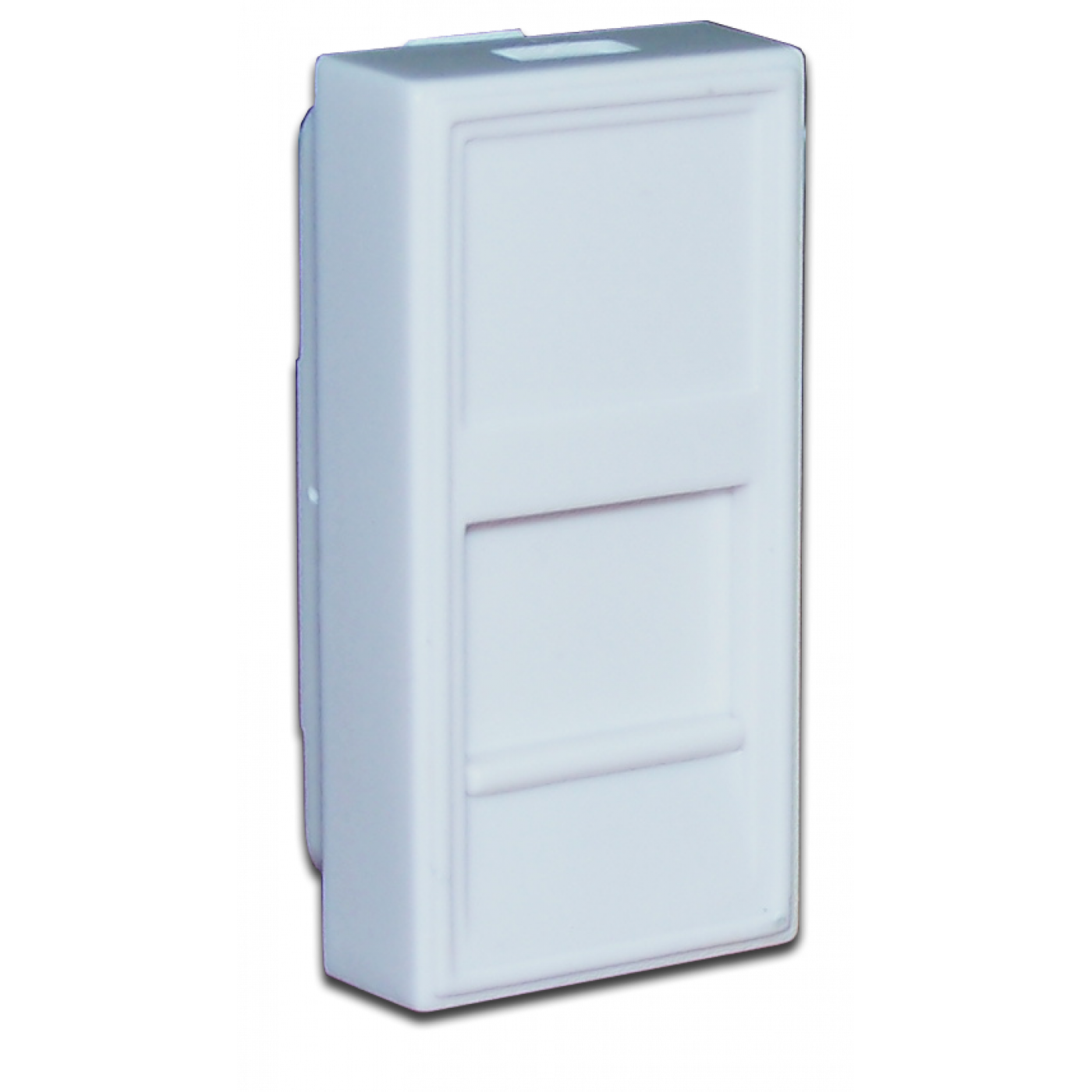 Лицевая вставка используется для установки телекоммуникационного модуля типа "Keystone" в розетку. Для защиты контактов модуля от повреждений имеется шторка. Эти лицевые вставки устанавливаются парами или совместно с заглушкой 22,5х45 мм.