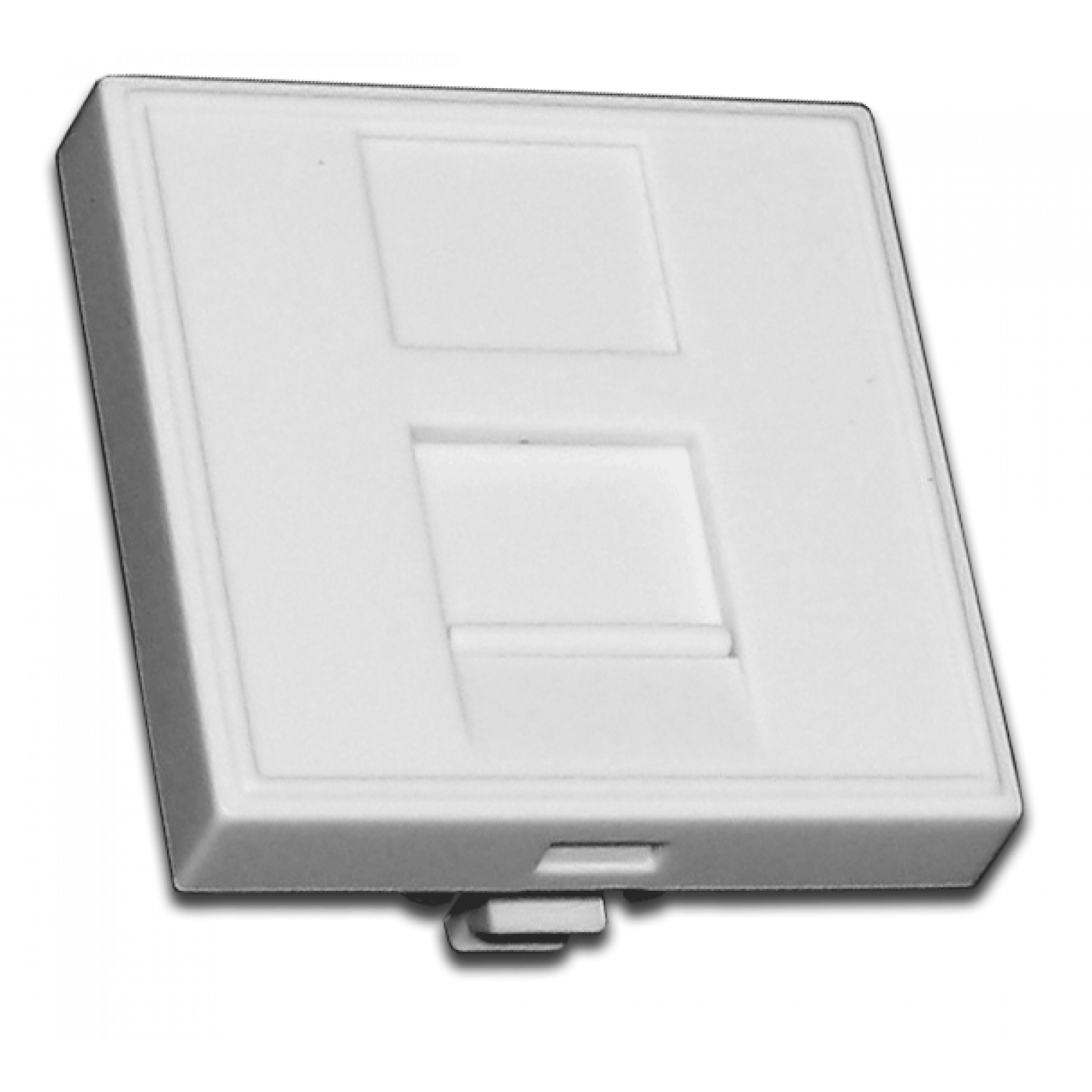 Лицевая вставка используется для установки телекоммуникационного модуля типа "Keystone" в розетку. Для защиты контактов модуля от повреждений имеется шторка.