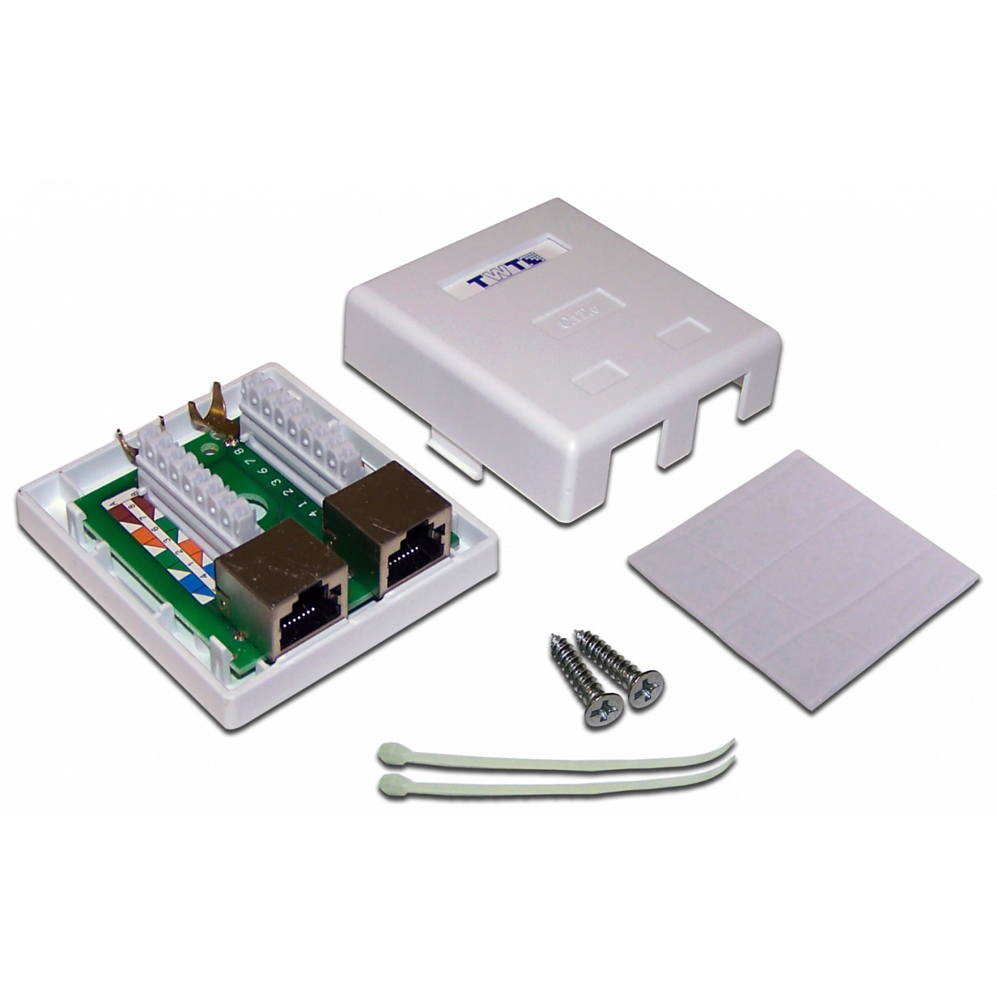 Двухпортовая экранированная (STP) телекоммуникационная розетка с 2 портами RJ-45, предназначена для монтажа на стену. Порты розетки смонтированы на одной печатной плате вместе с разъемами IDC 110-го типа.