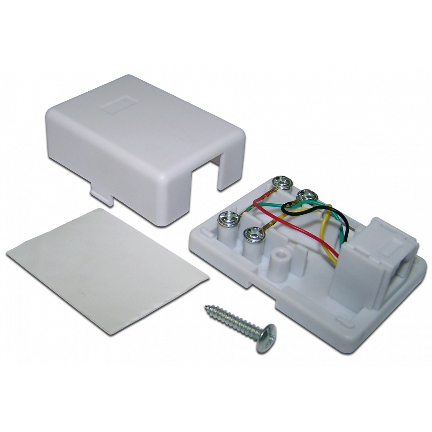 В комплект поставки входят липкая двухсторонняя площадка и винт для дополнительной фиксации розетки к гипсокартону.