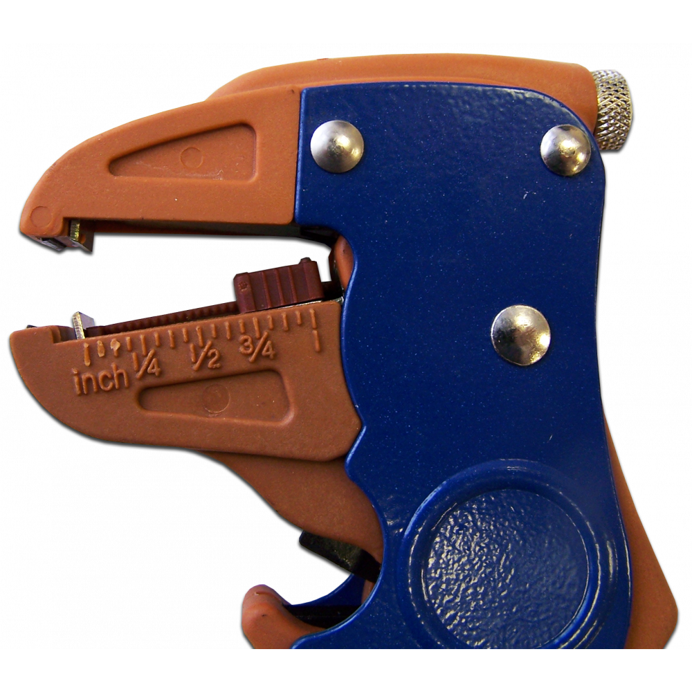 Настройка длины зачищаемого участка изоляции (от 2 до 20 мм) производится при помощи перемещаемого ограничителя. Для точного позиционирования ограничителя можно воспользоваться одной измерительных шкал - в дюймах или в миллиметрах, нанесенных на боковых поверхностях инструмента.