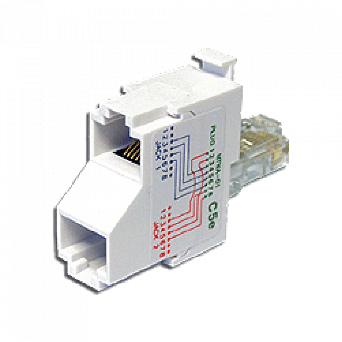 Схема разводки проводников размещена на боковой поверхности корпуса. T-адаптеры удобны для разделения портов на патч-панелях.