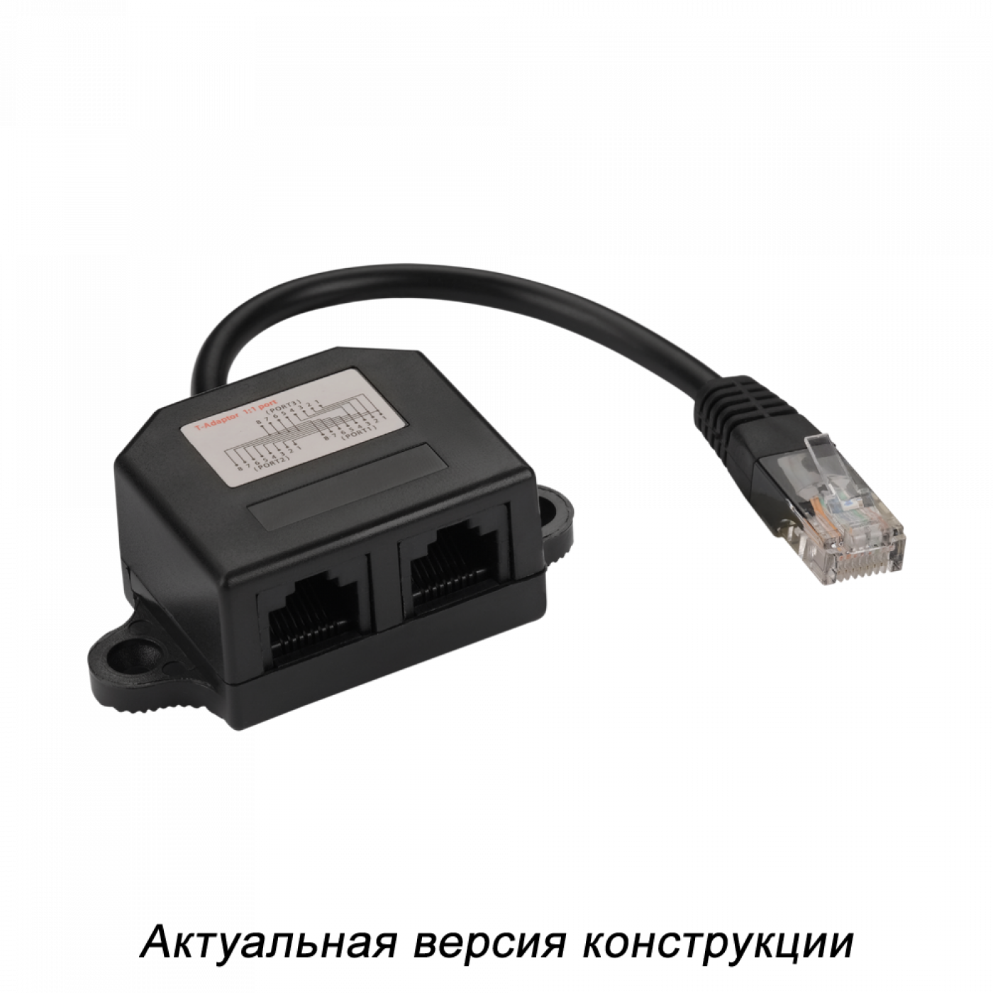 Преобразует один 4-парный порт RJ-45 на входе в два параллельных 4-х парных порта. Схема разводки проводников, а также площадки для маркировки размещены на верхней поверхности корпуса. Корпус Y-адаптера имеет ушки для фиксации на стене с помощью шурупов.